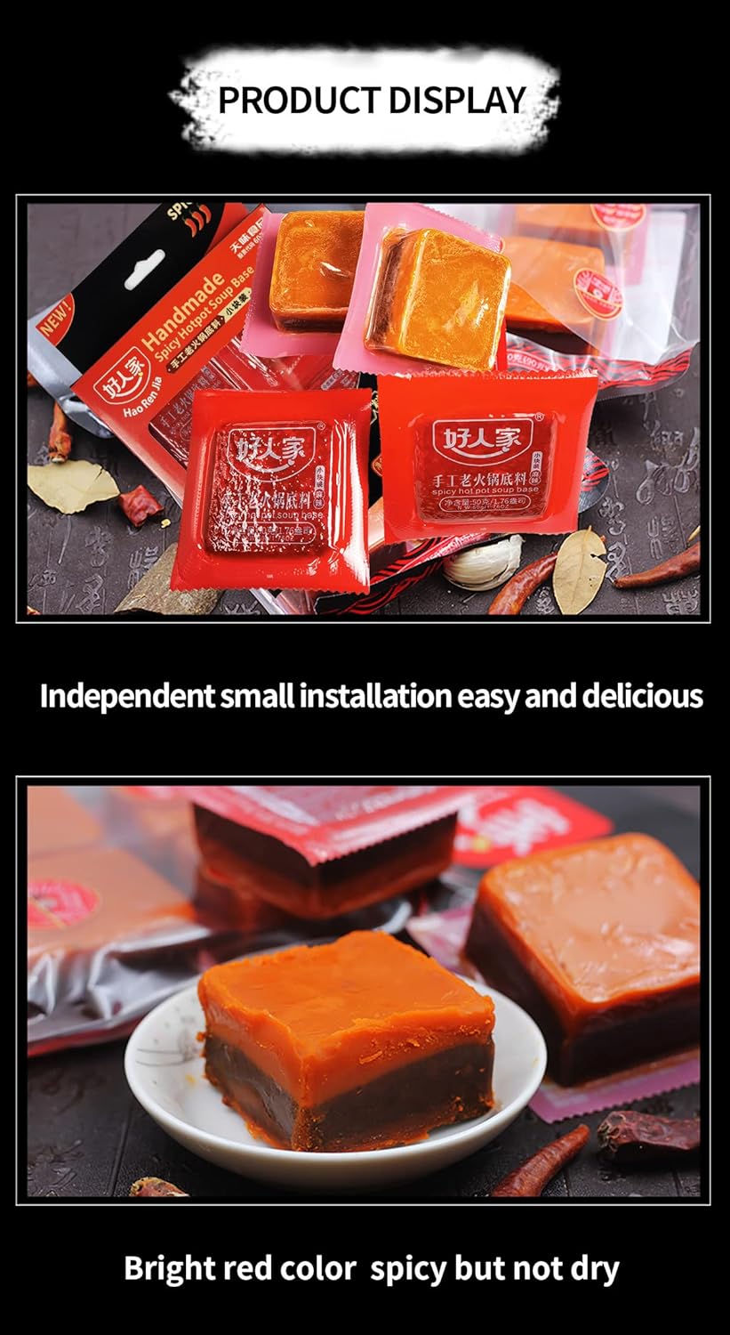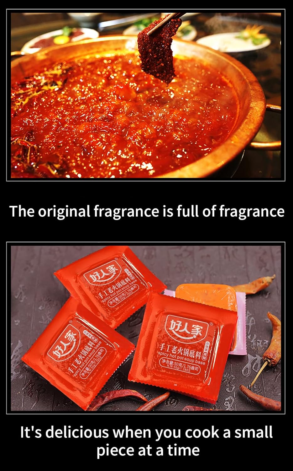 One bag sichuan hot pot seasoning base can serve hot pot for 2-4 peopleIndependent small installation easy and delicious Bright red color spicy but not dry |